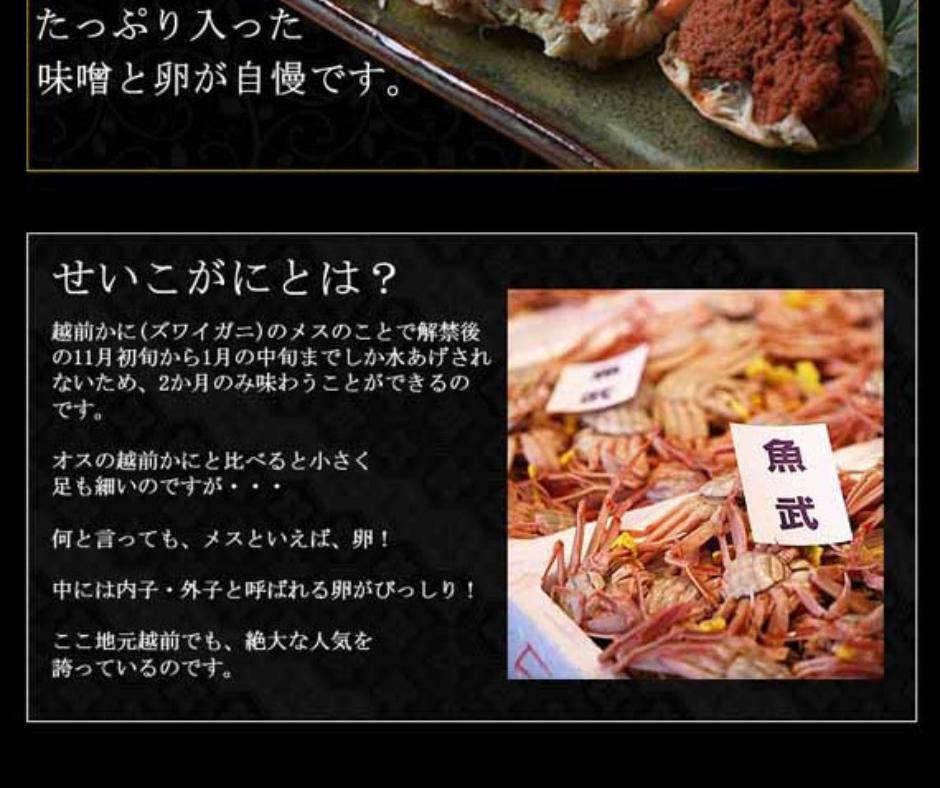 同じカテゴリのその他の商品other 越前せいこがにセット 越前せいこがに×10杯セット 送料無料対象商品 ¥ 13,000円(内税)〜 越前せいこがにセット 越前せいこがに×8杯セット 送料無料対象商品 ¥ 11,500円(内税)〜 越前せいこがにセット 越前せいこがに×5杯セット 送料無料対象商品 ¥ 8,000円(内税)〜